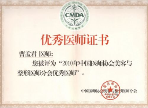 中国医师协会美容与整形医师分会“优秀医师”称号