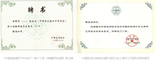 2010年,担任中国医师协会美容与整形医师分会上海市工作委员会常务委员;荣获中国医师协会美容与整形医师分会颁发的“优秀医师”称号