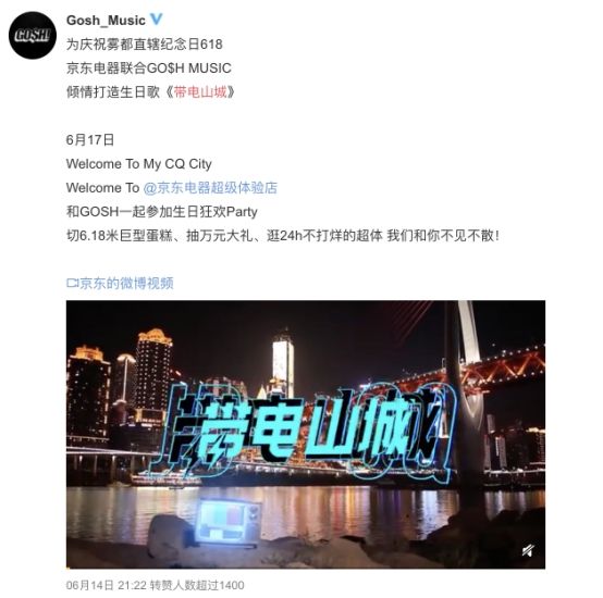 创造出“勒是雾都”这句年轻人间流行语的独立说唱厂牌——GOSH,近期再推最新力作《带电山城》。重庆说唱艺人Bridge布瑞吉及GOSH兄弟小艾EYE、JONHS通过说唱新作为京东电器超级体验店(以下简称“京东超体”)重庆店打call,描述了这座网红城市遇到潮流科技生活之后的新魅力。