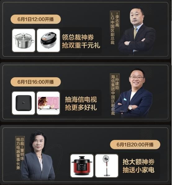 总裁一出手,就知有没有!在今年的618,京东家电集结了百大品牌总裁现场直播,从格力电器董事长董明珠,到TCL实业控股CEO王成、美的中国区域总裁吴海泉、LG中国区副总裁李志高、海信集团中国区副总裁孙建勋等等。与网红、明星汇聚的直播带货平台相比,京东家电的这列阵容相当独树一帜。