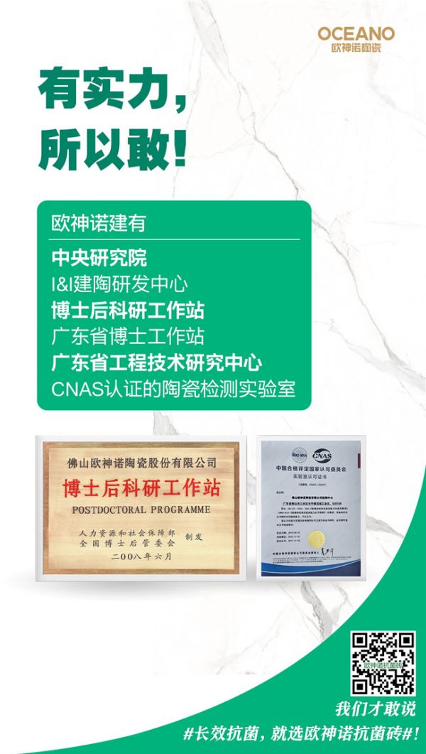 好奇这样神奇的抗菌砖,是有什么研发背景实力吗?本大大就给您透露一下。欧神诺建有国际领先I&I建陶研发中心、博士后科研工作站等硬实力,常年配备高级技术专家150多人,研发人员近600人,科研实力“软硬兼施”。