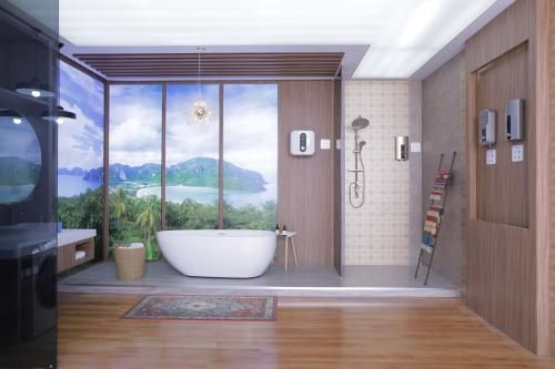 以充满热带风情的南亚及东南亚浴室为例,这些地区气候炎热,用户对于淋浴需求较大。对于淋浴,大家追求的是速度,所以加热快、水量大才是关键。南亚及东南亚浴室场景下,海尔方形机SPA拥有英格莱加热体,大大提升加热速度,热水输出量提升15%,同时可设定三档温度,精准恒温控制,记忆不同家庭成员的沐浴习惯,洗浴更加便捷。