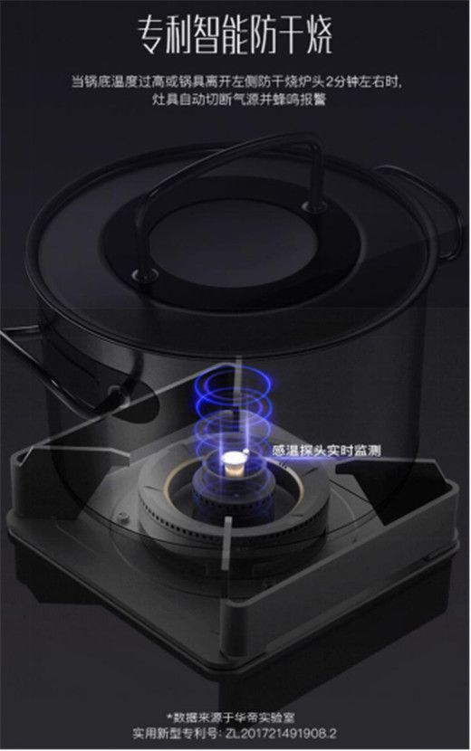 值得一提的是,华帝燃气灶i10053BF在五重安全防护系统的基础上,还创新加配专利智能防干烧技术。该产品在左边炉头上搭载专利智能感温探头,能精准实时监测锅底温度。一旦锅底温度过高或锅具离开左侧防干烧炉头2分钟左右时,灶具自动切断气源熄火并蜂鸣报警,防止出现燃气泄露引发重大事故,安全靠得住。