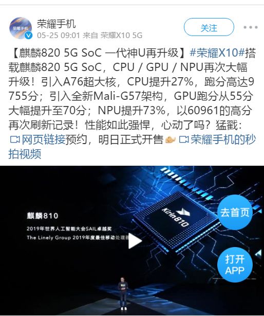 首先在核心配置方面,荣耀X10搭载了麒麟820 5G芯片,这款手机处理器自在荣耀30S首发时候便备受业内好评,它采用了目前业内最先进的7nm制程工艺、CPU方面采用了1 个大核+3 个中核+4 个小核的三档层次架构设计,这也使得麒麟820 5G SoC的性能以及功耗控制得以大大提升!
