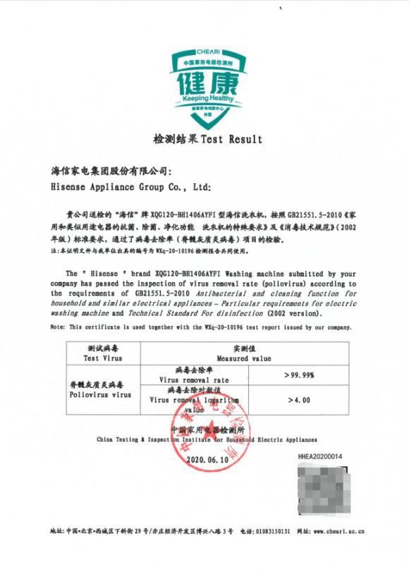 近日,《中国家电大健康场景技术发展白皮书》发布暨面向大健康场景的优势家电产品推介活动"在线举办。海信S9蒸烫洗衣机通过了中国家用电器检测所的病毒去除率(脊髓灰质炎病毒)项目的检验,病毒去除率超99.99%。凭此优势,还入选了由《家电科技》与《轻工标准与质量》联合发布的"2020年面向大健康场景的优势家电产品"榜单。