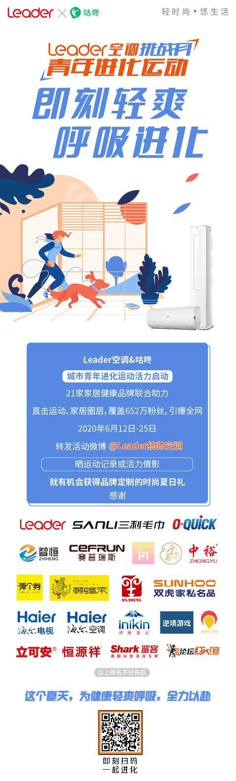 2020年的进度条已经加载过半,你还宅在家里吗?Leader喊你起来运动啦!6月12日-25日,Leader空调联手智能运动平台咕咚,带来Leader 青年进化运动会,上线首日已经吸引了8万参与者,截至今日,参与人数已达到30万人,你还在等什么?