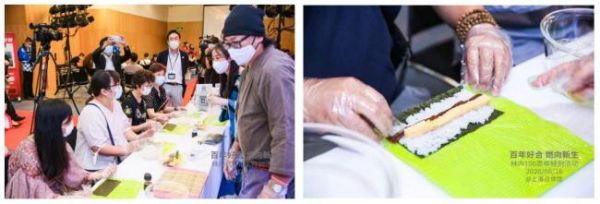 活动现场还设了手卷寿司体验区,特意请了来自北海道的资深料理人--真田俊之先生(小红书账号:“真田大叔的手作美食”,可线上跟着大叔学做日本家常菜),为来宾们指导具有日本特色的手卷寿司的制作。