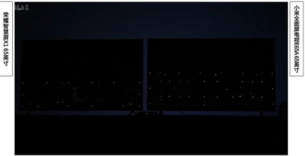 当进入拆机环节之后,小米做工方面的粗糙一览无遗。全是密密麻麻的胶布,而且内部走线十分随意,同时关灯之后也看到了大面积漏光情况。反观荣耀智慧屏X1整个内部做工更为工整,走线美观,同时荣耀还采用了成本高,工艺更为精致的贴合式设计,使得电视的开孔更少,长时间使用不会轻易进灰。