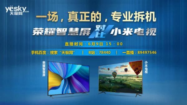 正是有了这些优势,荣耀智慧屏X1系列才能在上一次的拆机比拼中,从各个维度战胜小米电视。6月9日,天极网将针对荣耀电视与小米电视展开一场真正的专业拆机,究竟小米电视能否反败为胜?感兴趣的小伙伴千万不要错过。