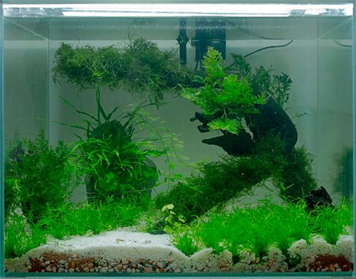 鱼缸使用一段时间以后在用玻璃上就会粘上一层污垢或者是苔藓,这是就可以使用磁刮器把鱼缸上的苔藓与圬垢挂干净,磁刮器它是由两块组合一对,一块是两片刀片与另一半刷片组合而成,并且还经过磁性的相吸成一对,一手把带刀片的一块放到水内贴到缸壁上,而另一手把带刷的一各放到缸外,这样就能让两片相互吸住,然后在进行来回移动就能把缸壁上的苔藓与污垢清洗干净。