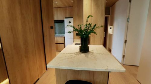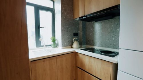 厨房从原来的2㎡扩展到6㎡,热爱下厨的男屋主终于不用忍受厨房面积过于狭小的尴尬,不过丈母娘对厨房仍不够满意,好在麻雀虽小五脏俱全,在设计师向她展示了厨房大量储物柜的强大功能后,丈母娘终于喜笑颜开接受了这个婚房。