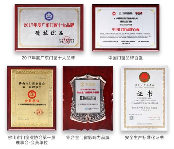 一路走来,德技优品门窗先后获得“2017年度广东门窗十大品牌”、“2019年度中国门窗百强”、“铝合金门窗影响力品牌”等荣誉,这是业内对于德技优品门窗的认可,也是德技优品门窗亮眼成绩的见证。经过短短数年的发展,德技优品门窗以黑马的姿态,走出了独特的“安全门窗”发展之路。在未来,德技优品门窗将以更加稳健自信的姿态,不忘初心,一路高歌,坚持产品创新研发,严格把控产品质量,用心坚守对用户的承诺,将用户体验放在首位,力求交出更亮眼的成绩单。