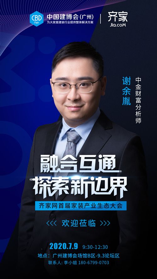 中金财富分析师谢余胤确认出席齐家网首届家装产业生态大会