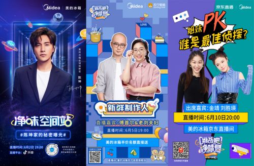 在刚过去的6月中,美的冰箱开展的一系列创新直播吸引了大量关注。既有佟大为关悦夫妇、韩庚等大咖现身直播现场为美的冰箱坐阵撑腰,更邀请到陈坤、傅首尔老刘夫妇、金靖刘胜瑛“姐妹花”组合、李智楠等明星艺人加入美的冰箱直播间,共同打造《净味空间站》、《挑战吧!净味君》等微综艺栏目。直播融合热点话题,打造辩论赛、脱口秀卖货等新鲜玩法,为用户带去惊喜不断。