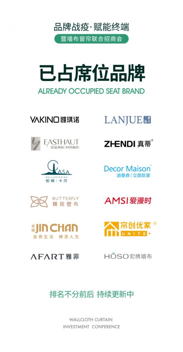 因疫情取消的北京展上应发布的2020年新品,也将在本次招商会上闪亮登场。可以看出,对于本次“品牌战疫·赋能终端’活动,中国轻纺城窗帘布艺协会将鼎力支持,所有参会的实力品牌将全力以赴,无论是在补贴支持上,还是在政策支持上,所有参会经销商将得到有史以来的最大力度的支持。