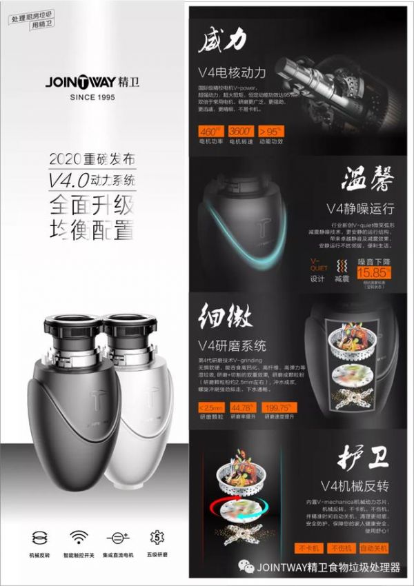 精卫厨余垃圾处理器通过新技术、新材料和新组合,来打造厨房空间的专属个人风格,能针对不同年龄阶段的人群,打造不同风格的厨余净化方案,为终端消费者提供一站式厨余净化解决方案。