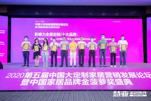 2020年7月10日,由中国建博会(广州)、慧亚传媒、菠萝家联合举办的2020第五届中国大定制家居营销发展论坛暨家居品牌金菠萝奖颁奖典礼于琶洲展馆B区8号会议室盛大举行。盛典中,众多行业大咖、家居媒体、全国各地家居行业品牌代表和经销商代表齐聚,共同聚焦全屋定制家装行业发展前景!