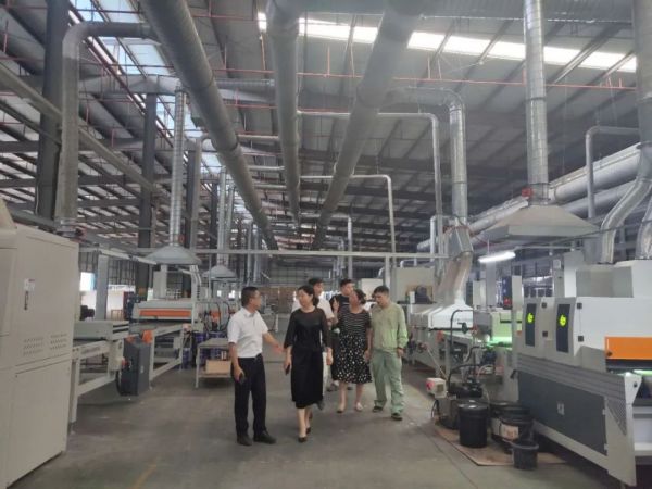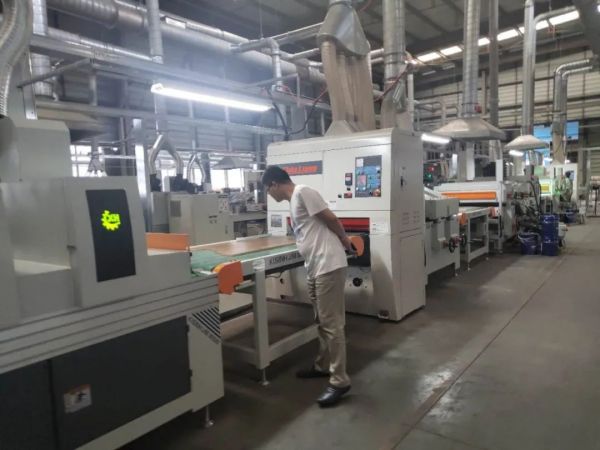 展厅参观完毕后,大家走进了莫干山地板生产车间,从坯料养生区到地板开榫槽再到环保油漆线,以及最后的包装检验环节,近距离观看地板的生产运作,对地板的生产全过程有了大致的了解。值得一提的是,刚刚入驻到莫干山地板的新型进口油漆线,是国内最长、工艺最精密油漆流水线,生产可实现高品质高标准精细化生产。车间一行,精湛的工艺、严苛的生产流程、环保优异的品质,将为未来双方达成合作奠定强有力的基础。