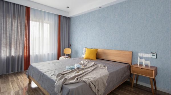 请看科翔墙布简系列:选用细腻丝绵,冰丝绒面料,非常透气舒爽,而且像蚕丝一般的柔软。风格是美式田园风,色调是以各种色系的浅色为主,仿佛在炎热的夏天给人送来一阵清新愉悦的清风,它不仅吸湿排湿,而且能够舒缓精神,促进睡眠。