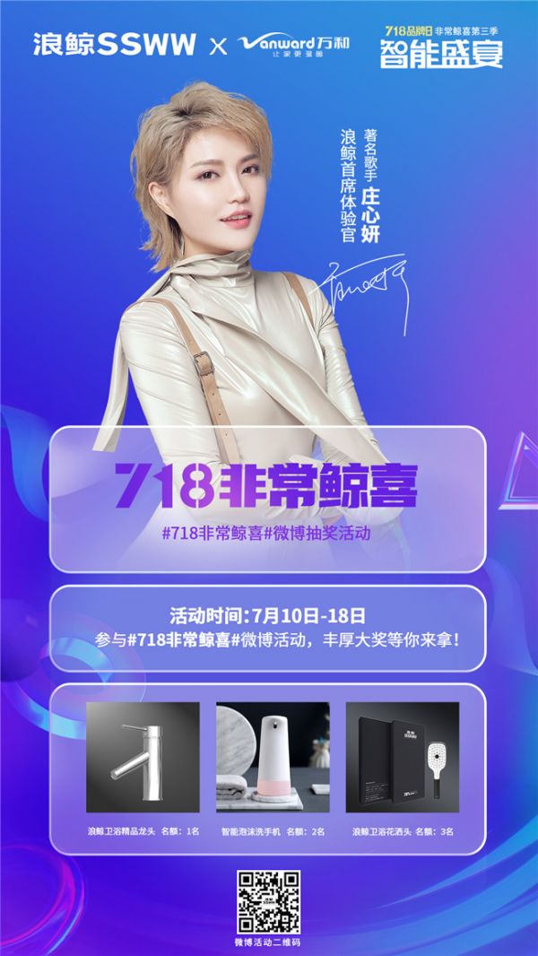 本次活动,浪鲸卫浴盛特邀著名歌手庄心妍担任首席体验官,为消费者种草浴室好物,带来超高品质的新潮爆款。为全国消费者倾力打造一场全民狂欢的智能盛宴。