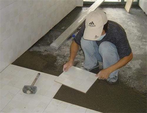 先使用铲子把泥沙浆涂抹到瓷砖的背面上,再来把瓷砖贴到墙面,再使用橡胶锤轻轻敲瓷砖,让泥沙浆可以充满墙面和瓷砖当中的空间。地砖铺贴通常都是根据由门窗边或者是阳台开始铺贴出来,从上到下,从左到右的顺序行进。