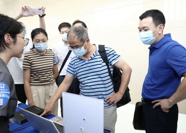 ▲大赛评委到微盾科技展位体验相关静脉产品