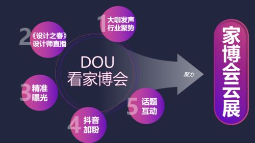 除了潮流新品、福利优惠、最新资讯,“DOU看家博会”还有云逛展直播、“设计之春”大咖抖音直播、抖音&头条双话题互动等精彩内容,持续种草线下逛展观众的同时,营造“白天逛展会、晚上看直播”的会展营销新业态。