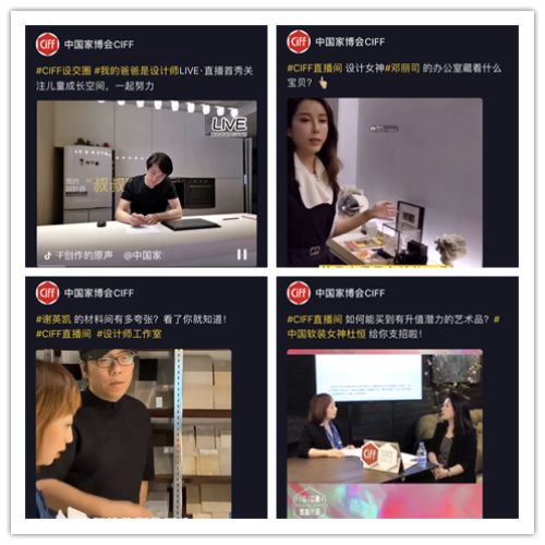 线下展会期间,CIFF抖音号将同步云播,特约主持人优选优质品牌,探寻原创设计,对话知名大咖,感受家具设计的无穷魅力以及最新趋势,发现办公未来的无限可能,每天6小时直播逛展,线上线下同样精彩!