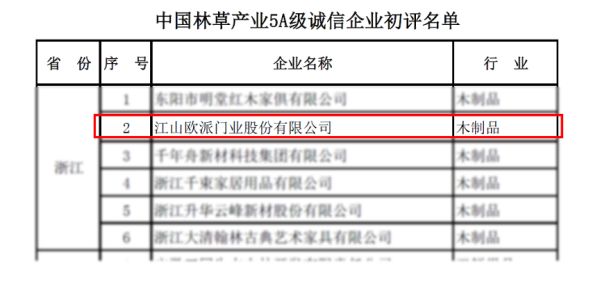 近日,江山欧派凭借诚信经营的卓越成绩,被授予“中国林草产业5A级诚信企业”,江山欧派将以此为动力,持续为广大用户提供健康环保的木门产品。