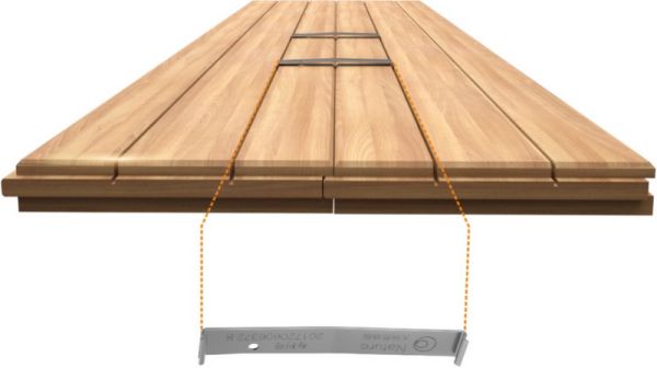 钢扣固装技术是大自然地暖实木地板的核心安装技术,其原理是有效利用预留间的缝隙,释放地板干缩湿胀的应力,科学地控制地板的干缩湿胀,从而使安装效果受力更恒稳。与普遍使用的锁扣技术对比,一块钢扣在一片地板上的作用力约760kgf,一块地板安装时约有两到三个钢扣,以此类推,一块钢扣地板拉力约等于一块锁扣地板2倍,安装效果更衡稳牢固,为产品稳定性再添一道屏障。