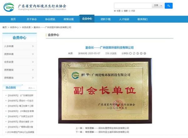 经过优吸环保全体员工的努力,2020年5月,我公司成功成为广东省室内环境卫生行业协会副会长单位。广东省室内环境卫生协会对我公司发展前景、服务能力和团队建设等方面给予了高度评价。此证的取得,进一步证明了广州优吸环保科技有限公司在服务质量方面拥有着雄厚的技术实力与高效的服务能力,我公司员工将以此为动力继续寻求更加贴心的服务方向,为公司的健康稳定发展提供坚实的后盾!