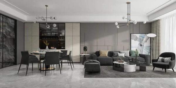 客餐厅一体化对室内所有细节上的搭配都有着更高的要求。无论是在色彩、墙面设计、家具选择等等细节上都要考虑到。这样才能达到高度的统一,并且设计感会得到很大的提升。