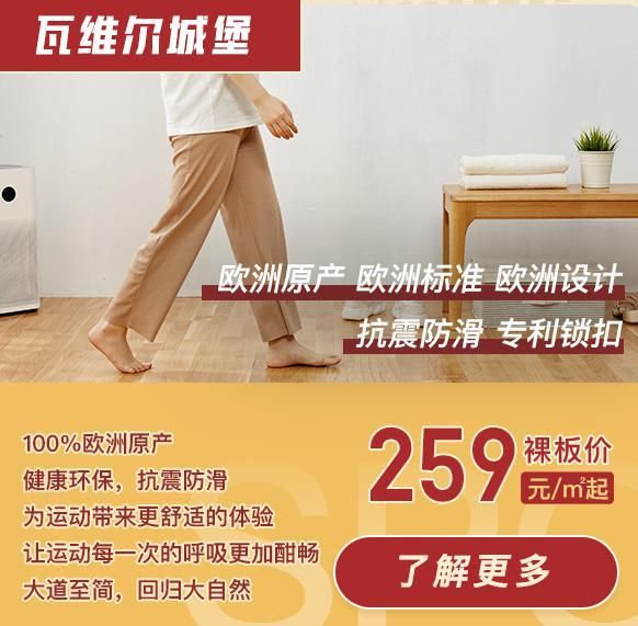 8月8日大自然地板全民健身日即将到来。从2014年起,大自然家居开创“大自然家居健身强心十年计划”,普及健康生活方式。2020年8月,大自然地板举行“叫板卡路里——大自然全民健身日暨三层实木地板体验季”活动,邀请乒乓球奥运冠军张继科成为大自然叫板指挥官,在KEEP、抖音和微信朋友圈发起挑战赛,成功参与即有机会瓜分大奖,同时,号召消费者“带大自然回家,造个运动场”。如何轻松打造安全舒适的居家运动场所?大自然地板持续为消费者提供更优质的运动解决方案,其中,大自然进口三层实木地板瓦维尔城堡(259元/㎡裸板价)防滑抗震,安全舒适,全国门店均可体验,让用户在家运动更安全更舒适。