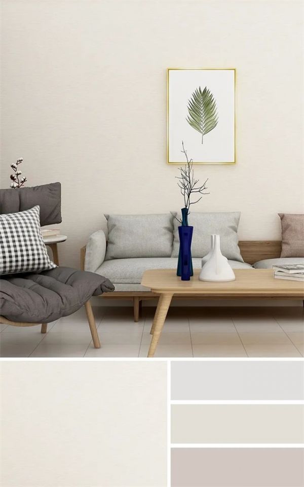 雅诗澜这款浅米色墙布,搭配简单线条的装饰、清新的绿植与纯色的家具,无不彰显着北欧简约的简洁实用。
