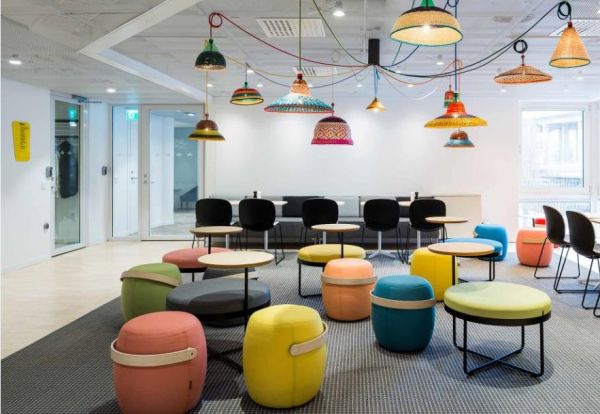 通过无处不在的创意隔断和吸音板的使用,以及对家具色彩、形状的灵活搭配,可实现空间的最大限度合理化使用。
