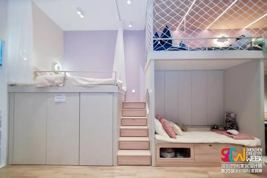 其中,“未来社区成果展”,由深圳家协住宅精装研究院院长关永康为主策展人,联合十大设计机构打造了九种生活解决方案,包含了29㎡-180㎡九种户型,从人宠合居到三代同堂,呈现一个真实未来社区。整个精装的关键点不在于“精装”,而在对人的需求的“设计”。如深家协精装院作品——漫乐小屋,就尝试用29平的公寓来探讨在这种极致的空间里面,一家三口和萌宠如何学习、玩耍、休息、生活一应俱全。