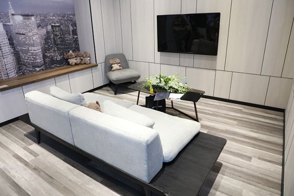 为满足消费者的新兴需求,大自然家居携SPC弹性地板高调亮相概念展,为消费者打造时尚个性的客厅空间展示。凭借优质的产品品质与时尚潮流的花色,现场吸引了不少观众驻足观看。据悉,大自然SPC弹性地板比起传统的乳胶漆,更能给予绿色环保的室内空间装饰;还具有安装方便快捷,零甲醛污染的优势。此外,大自然家居地墙一体化产品涵盖实木地板、实木复合地板、强化地板及SPC弹性地板等,能满足消费者多元化的需求。