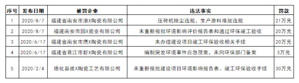 福建:泉州5家陶瓷企业 被罚94万元