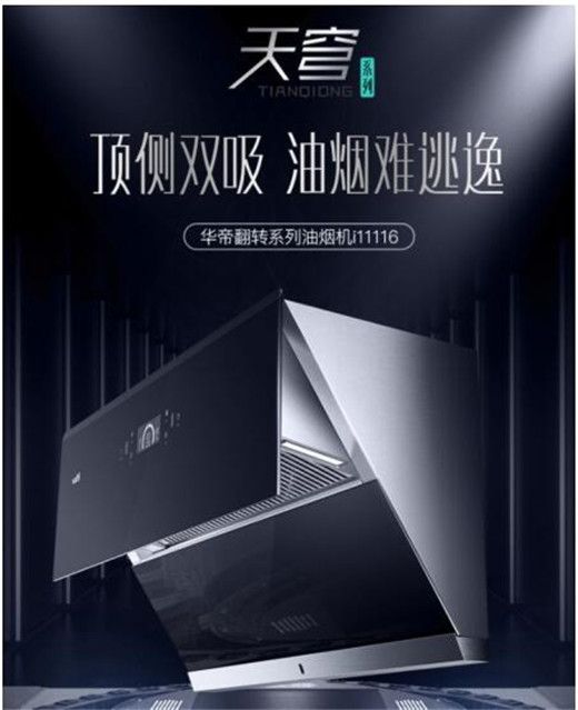 在华帝高端油烟机品类上,首先要说的是天穹系列产品,这个系列的产品以近吸式形态为主,最主要的产品特点是采取顶侧双吸的翻转式油网创新设计,让近吸式油烟机有了拢烟腔,消费者大可不必再为选顶吸或近吸式产品而烦恼。