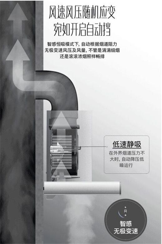 正如定频空调向变频空调转变一样,为新一代的中高端油烟机带来诸多卓越性能的提升。以华帝直流变频油烟机i11143型号为例,比较定频交流电机,变频电机具有智感变速的显著特点,产品内置智能芯片,能够自动感应和监测油烟排放情况,自动适配合适的风量和风压,达到无极变速、瞬吸秒排的完美效果。