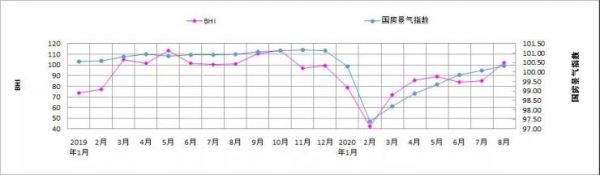 图1:2019年1月-2020年8月BHI与国房景气指数对比图
