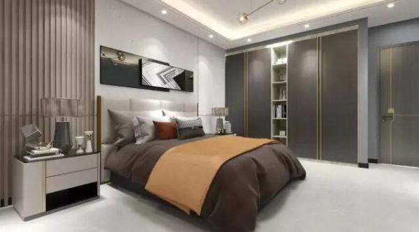 没有繁杂冗余的装饰,更注重卧室的简洁与舒适,追求生活的质感,呈现出简约、自然、温暖的氛围。