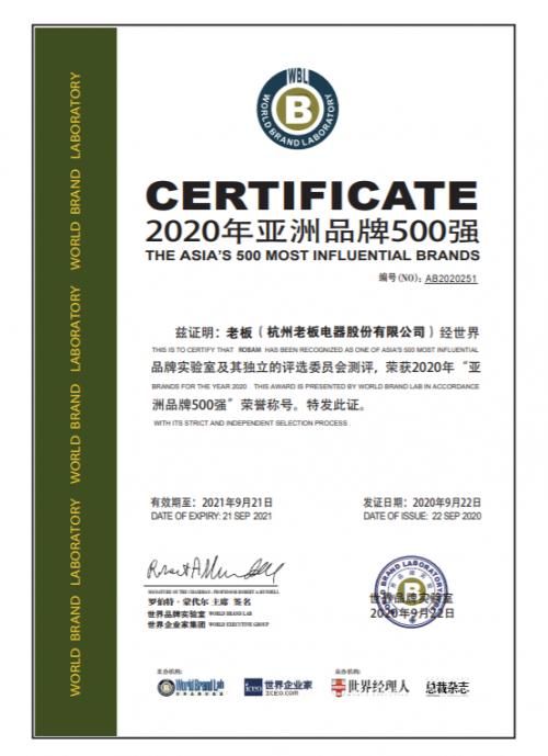 据悉,世界品牌实验室评价亚洲品牌影响力的基本指标包括市场占有率(Market Share)、品牌忠诚度(Brand Loyalty)和亚洲领导力(Asian Leadership)。今年是世界品牌实验室(World Brand Lab)第15次对亚洲品牌的影响力进行的测评,也是老板电器第15次摘得这一殊荣,这是《亚洲品牌500强》对老板电器行业领导地位和高端品牌模式的认可。