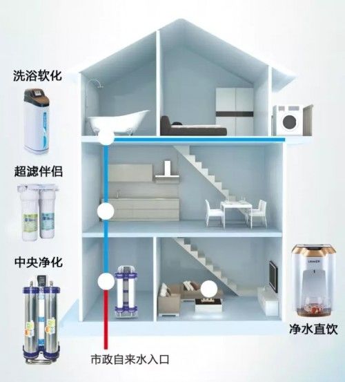 中央净水器是安装在入户水的总管处,它就像一个兢兢业业的守卫,牢牢把好进入我们家中的水源第一关,在它的基础上我们还可以根据自己的需求搭载不同的末端超滤伴侣。