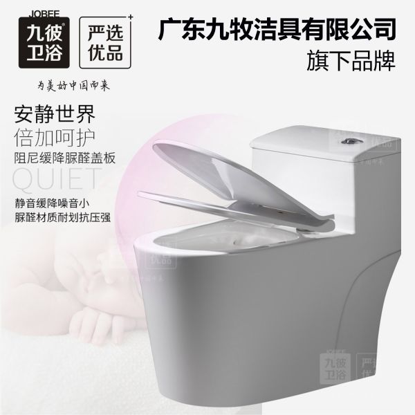 九彼马桶采用脲醛静音缓降盖板,阻尼缓降设计可以避免盖板和座便器的强力撞击,减少噪音污染,也能保护座便器本体,