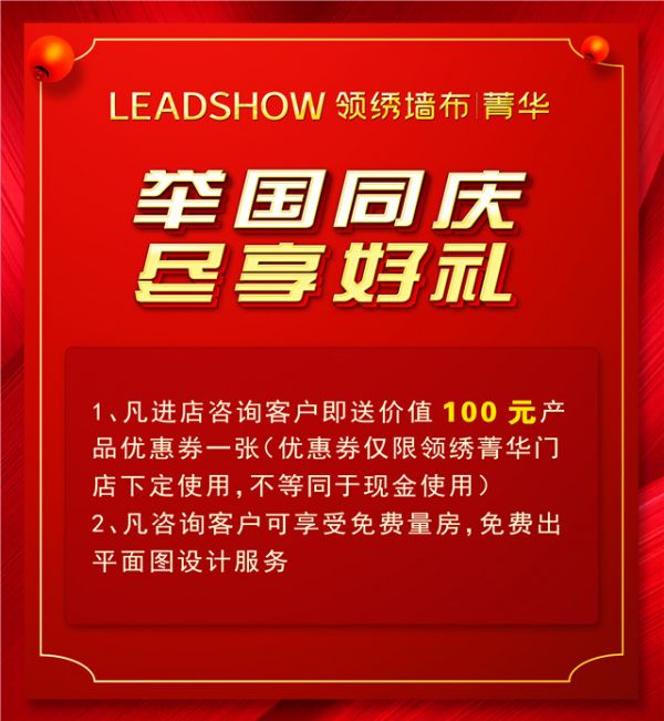 1.凡进店咨询客户即送价值100元产品优惠券一张(优惠券仅限领绣菁华门店下定使用,不等同于现金使用)