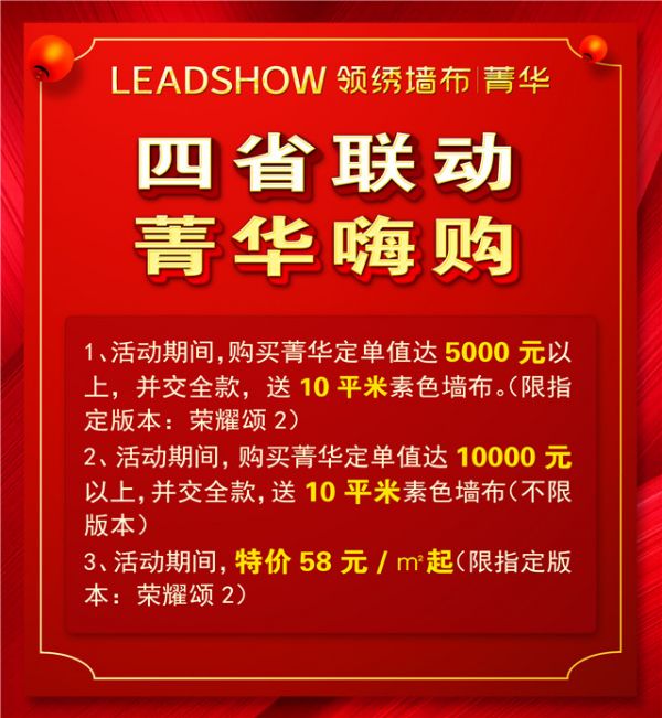 2.活动期间,购买菁华定单值达10000以上,并交全款,送10平米素色墙布(不限版本)