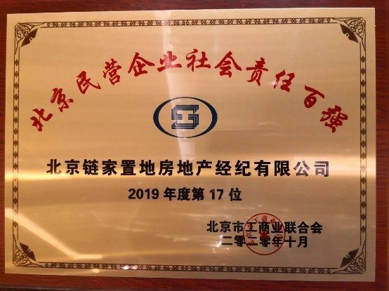10月10日,由北京市工商联与北京经济技术开发区管委会联合举办的“2020北京民营企业百强发布会”在京顺利召开,北京链家因积极主动履行企业社会责任,凭借在积极带动社会就业、热心参与公益慈善等方面的出色实践和示范性作用,被授予“2020北京民营企业社会责任百强”称号,位列该榜单第十七名。