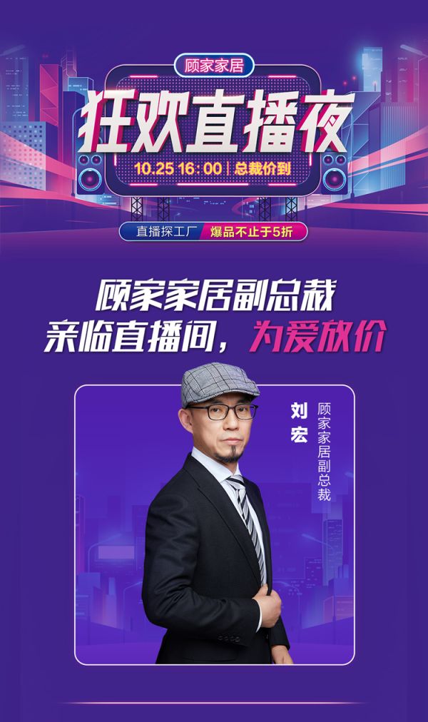 顾家家居副总裁刘宏亲临直播间为广大消费者送福利。这里不仅有惊爆产品,更有顾家家居副总裁的满满爱意。