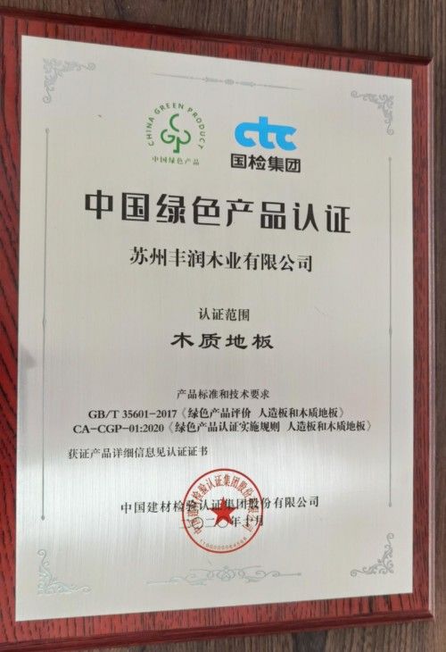 在本次大会上,苏州丰润木业有限公司(天科地板)由中国建材检验认证集团有限公司(以下简称:国检集团)颁发的《中国绿色产品认证》证书。这份证书不仅也充分证明了天科地板在积极响应国家号召践行高品质绿色发展理念,为广大用户营造健康、绿色的家居环境为己任的企业责任,更是对天科地板“绿色制造”理念的高度认可,也无疑树立了木地板行业绿色发展的典范。